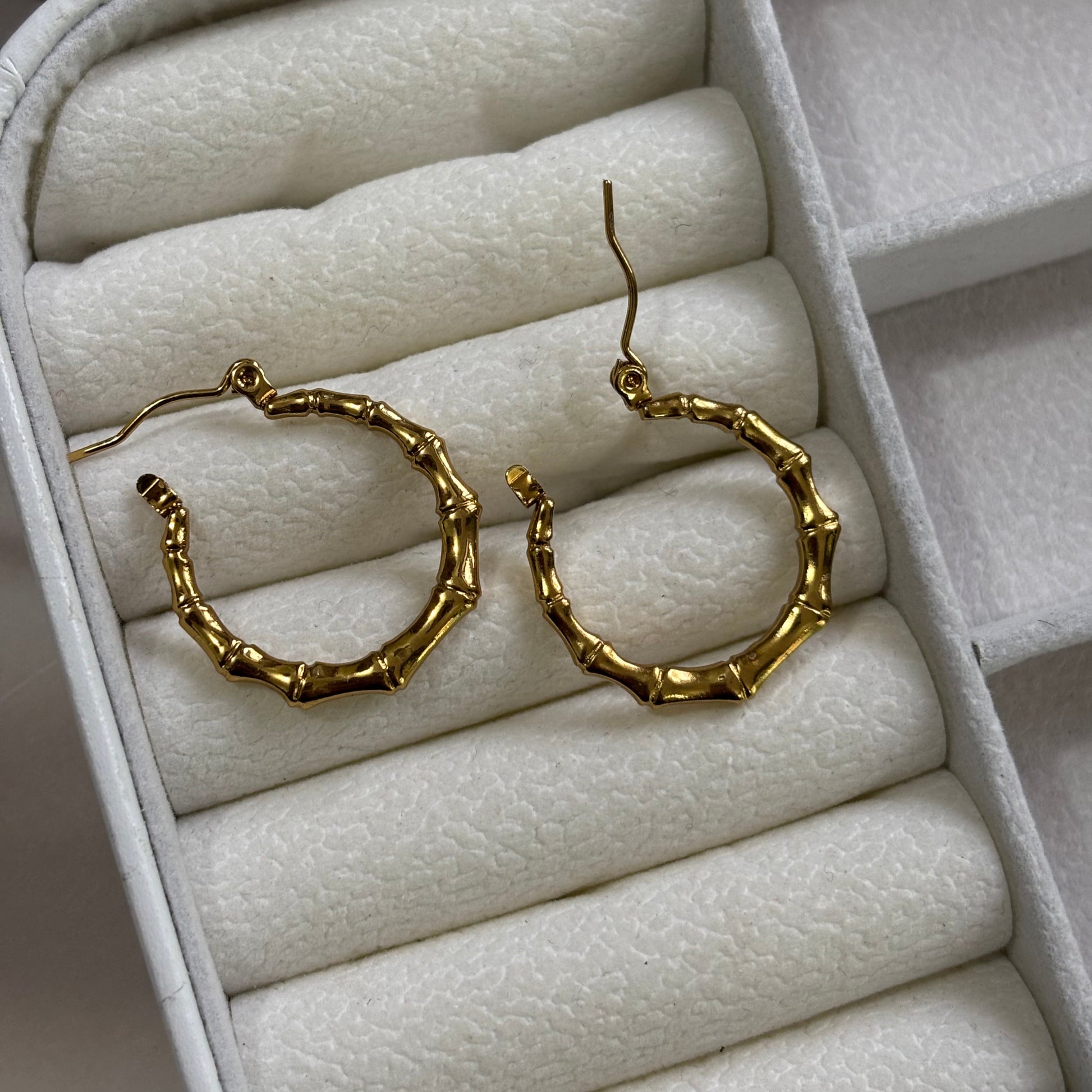 Introducing the Bamboo Hoops - the perfect addition to your accessories collection! These hoops add a touch of natural beauty to any outfit. Plus, they are lightweight and comfortable to wear all day. Elevate your style and make a statement with Bamboo Hoops!