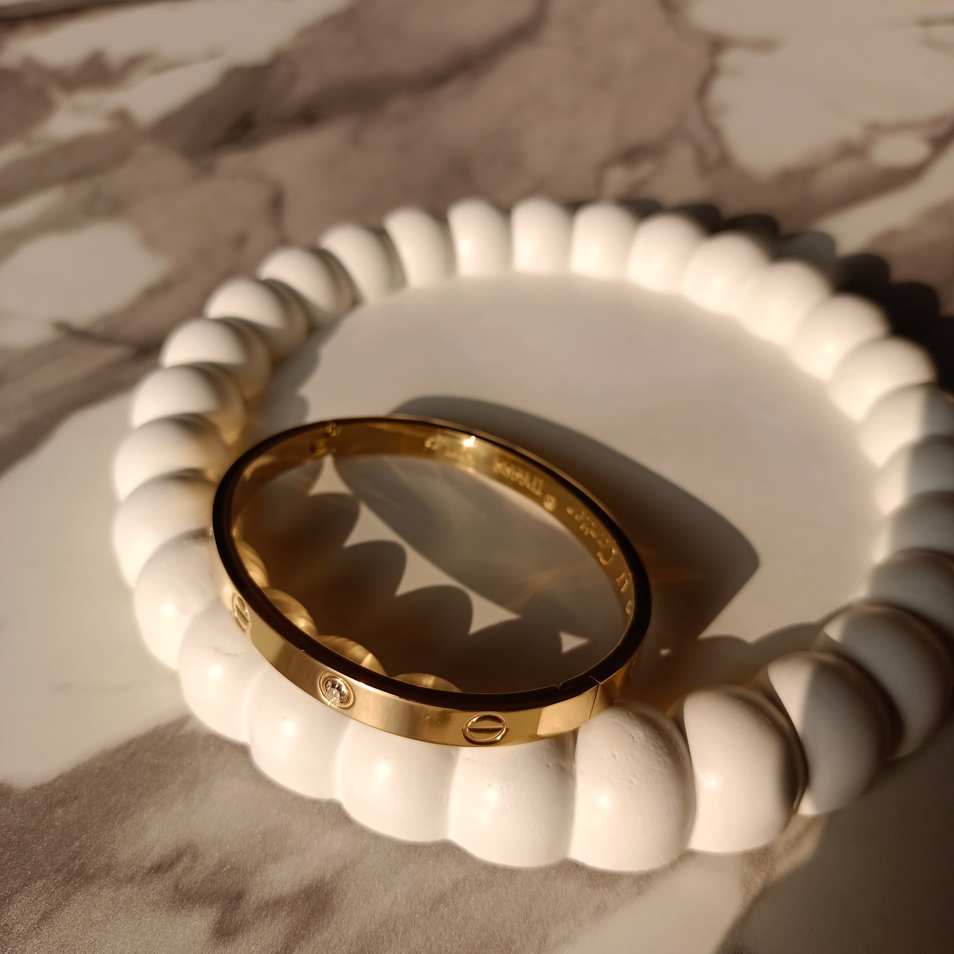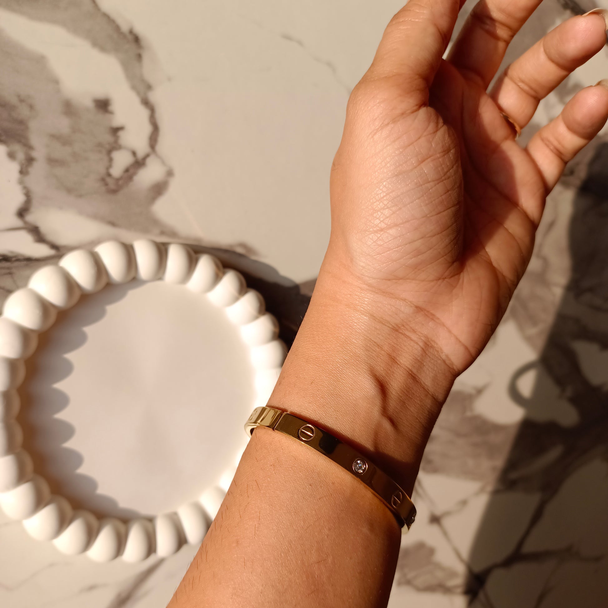 Elevate your style with the luxurious Cartier Bracelet. Made with exquisite craftsmanship and attention to detail, this bracelet exudes elegance and sophistication. Perfect for any occasion, it effortlessly adds a touch of glamour to any outfit. Elevate your look and make a statement with the timeless Cartier Bracelet.