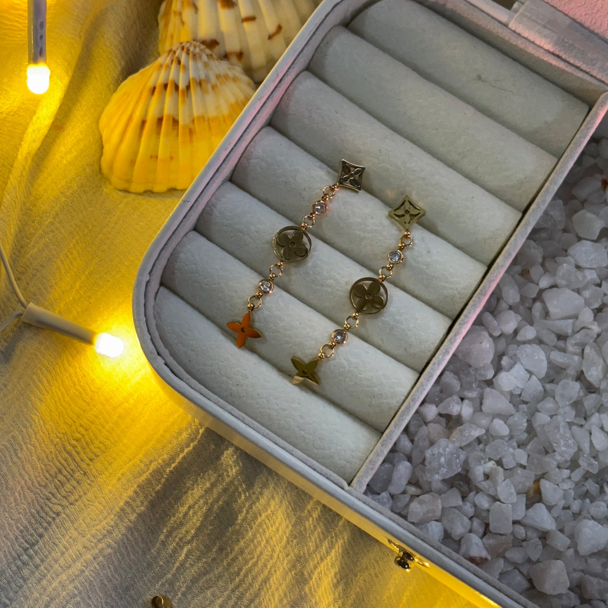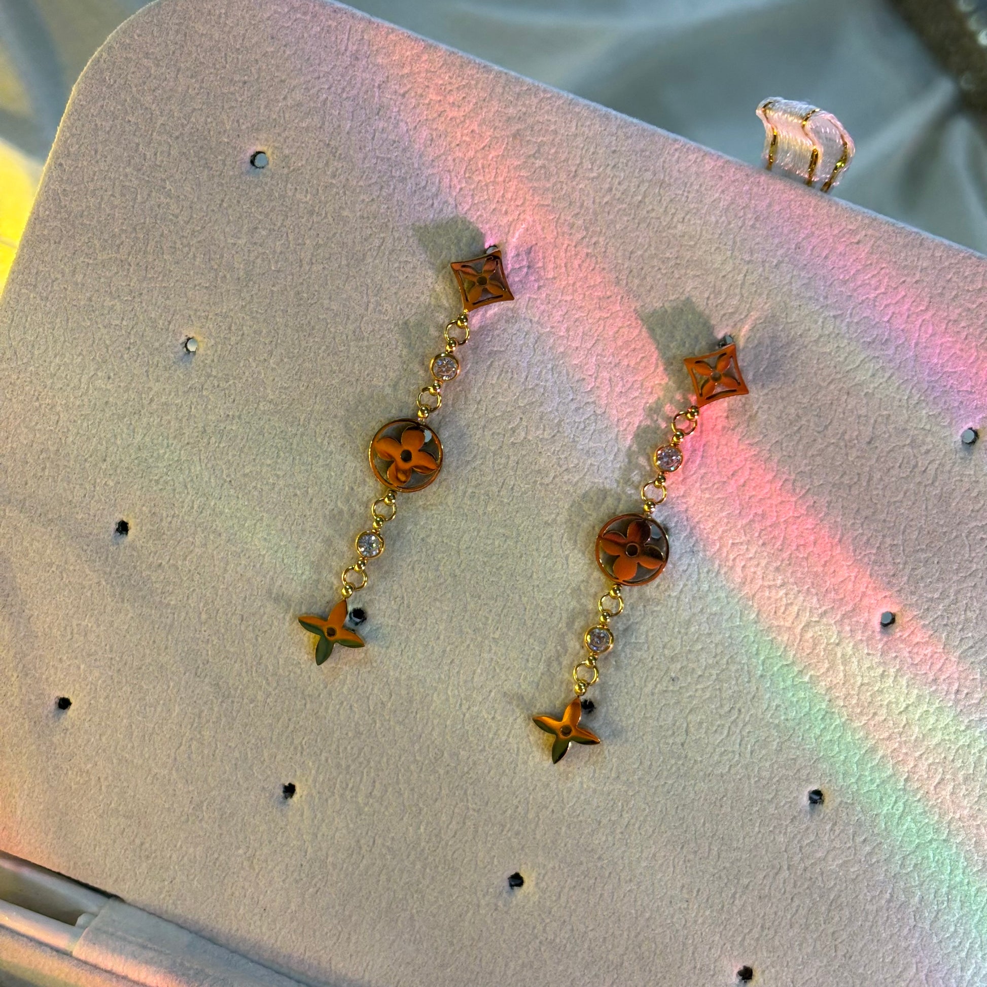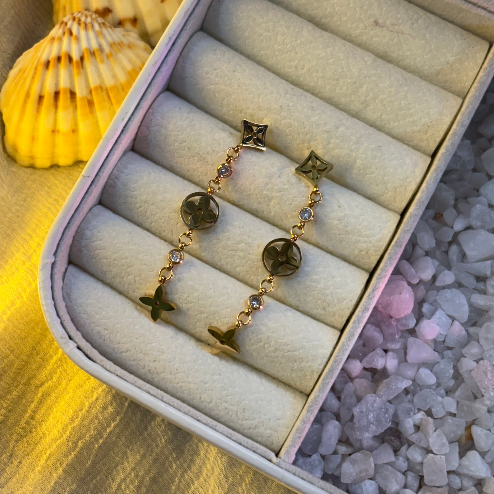 Style with the Drizzle Drop earrings, featuring elegant stone-studded drops that shimmer with every movement. Gold-plated and designed with an anti-tarnish finish, these chic earrings promise lasting shine and sophistication. Perfect for adding a touch of glamour to any outfit, they effortlessly blend timeless beauty with modern flair.