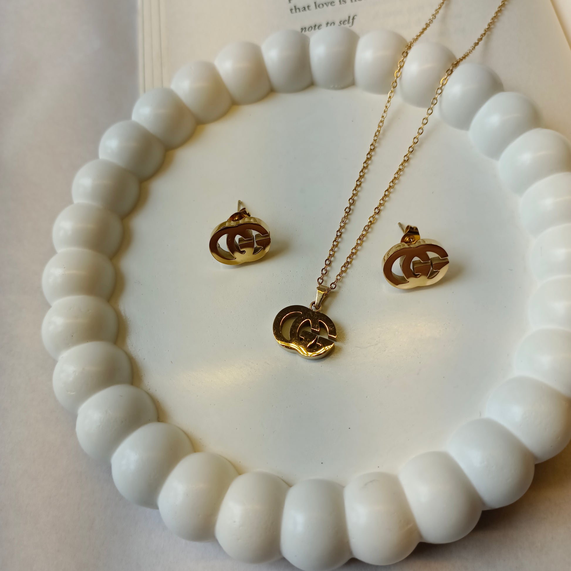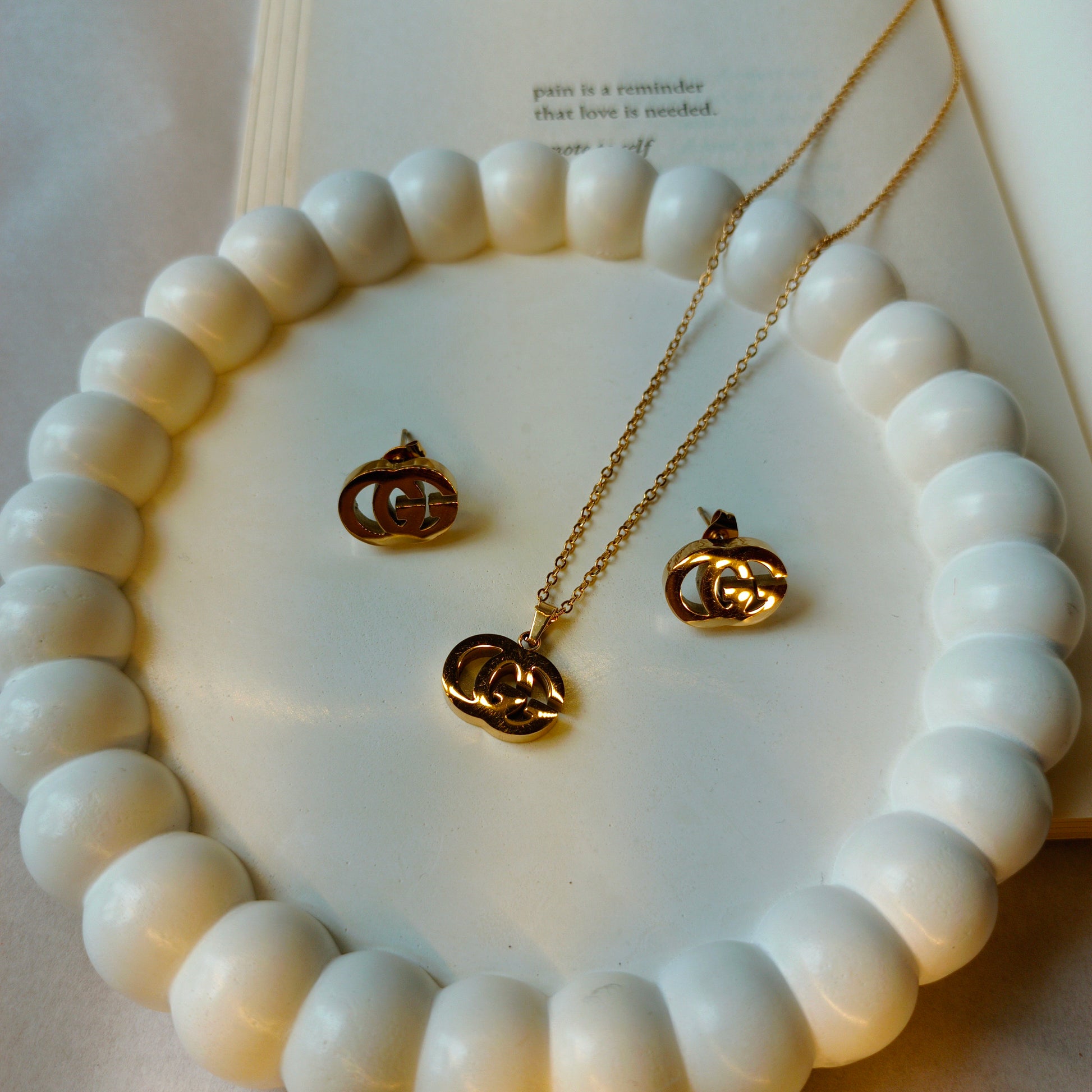Gucci Pendant and Earrings Set 18K Gold Plated, Waterproof and Anti Tarnish